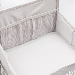 Od kvalitetnog 100% poliestera za dug vijek trajanja i jednostavno održavanje. Roditelji će cijeniti brzu montažu na krevetić i stabilno pričvršćivanje. Idealan za svakodnevnu organizaciju pelena, vlažnih maramica, kozmetike, duda i sitnih igračaka.
