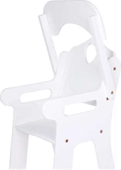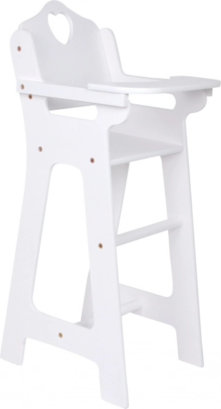 Stilska i stabilna dječja hranilica za lutke od drva u bijelom laku s preslatkim srcem na naslonu. Zahvaljujući visini od 63 cm odlično pristaje uz blagovaonski stol i proširuje mogućnosti tematske igre. Jednostavna montaža uz priložene ilustrirane upute.