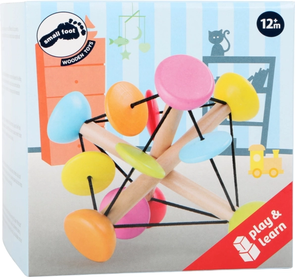 Ova domišljata motorička igračka small foot osmišljena je za male dječje ručice. Tri drvene štapiće povezane elastičnim gumicama stvaraju stabilnu, ali podatnu konstrukciju koju djeca mogu slobodno oblikovati. Šarene perlice pri pomicanju i okretanju ugodno zazveckaju, čime podupiru osjetilni razvoj i koncentraciju.
