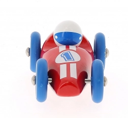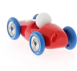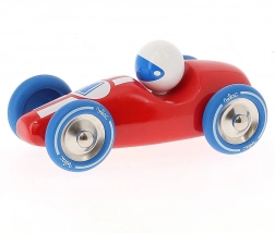 Stilski drveni trkaći automobil VILAC u žarko crvenoj boji s plavim kotačima razveselit će i male i velike. Izrađen je od lakiranog tvrdog drva, ima čvrste metalne gumirane kotače za glatku vožnju i odlično služi za igru i kao dizajnerska dekoracija. Proizvedeno u Francuskoj.