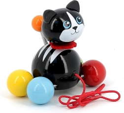 Vučna mačkica Minou izvrstan je pratitelj za prve šetnje po domu. Djeca će je zahvaljujući šarenim kugličnim kotačićima i crvenom uzetu lako zavoljeti te prirodno razvijati grubu motoriku, stabilnost i koordinaciju oko–ruka. Laka i izdržljiva konstrukcija od lakiranog punog drva ugodna je na dodir i lako se čisti.