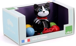 Minimalistički dizajn s crnim tjelešcem, bijelim njuškicom i pomičnim repićem na oprugici pruža djeci vizualnu i zvučnu stimulaciju pri svakom koraku. Kvalitetna izrada brenda Vilac iz francuske proizvodnje jamči sigurnost i dugotrajnost igračke.