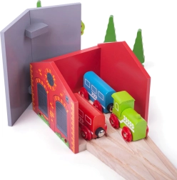 Proširite svoju prugu stilskom ciglenom remizom u koju možete udobno parkirati do dva vlakića. Zahvaljujući priloženoj ulaznoj tračnici remizu ćete jednostavno povezati s postojećom prugom i stvoriti realistično zaleđe za odmor, održavanje ili točenje goriva kompozicija. Robusna drvena konstrukcija i bezvremenski dizajn jamče dugotrajan vijek i sigurnu igru.