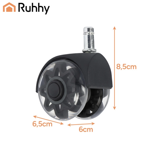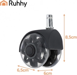 RUHHY kotačići donose udobnost i sigurnost za vaš pod i stolicu. Zahvaljujući mekoj PU površini glatko se kotrljaju po laminatu, parketu, pločicama i tepihu bez ostavljanja ogrebotina. Čelični ležaj i ojačana konstrukcija jamče dug vijek trajanja i pouzdanost pri svakodnevnoj uporabi.