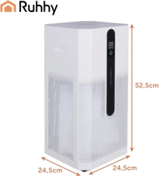 Pametni pročistač zraka RUHHY Ioniqs kombinira trofaznu filtraciju (predfiltar + HEPA H12 + aktivni ugljen) i ionizaciju kako bi uklonio prašinu, pelud, smog PM2.5, grinje, bakterije, viruse i neugodne mirise. Zahvaljujući CADR 370 m³/h brzo pročišćava zrak u dnevnoj sobi, spavaćoj sobi i uredu, a obojeni indikator kvalitete zraka kontinuirano vas informira o stanju okoline.
