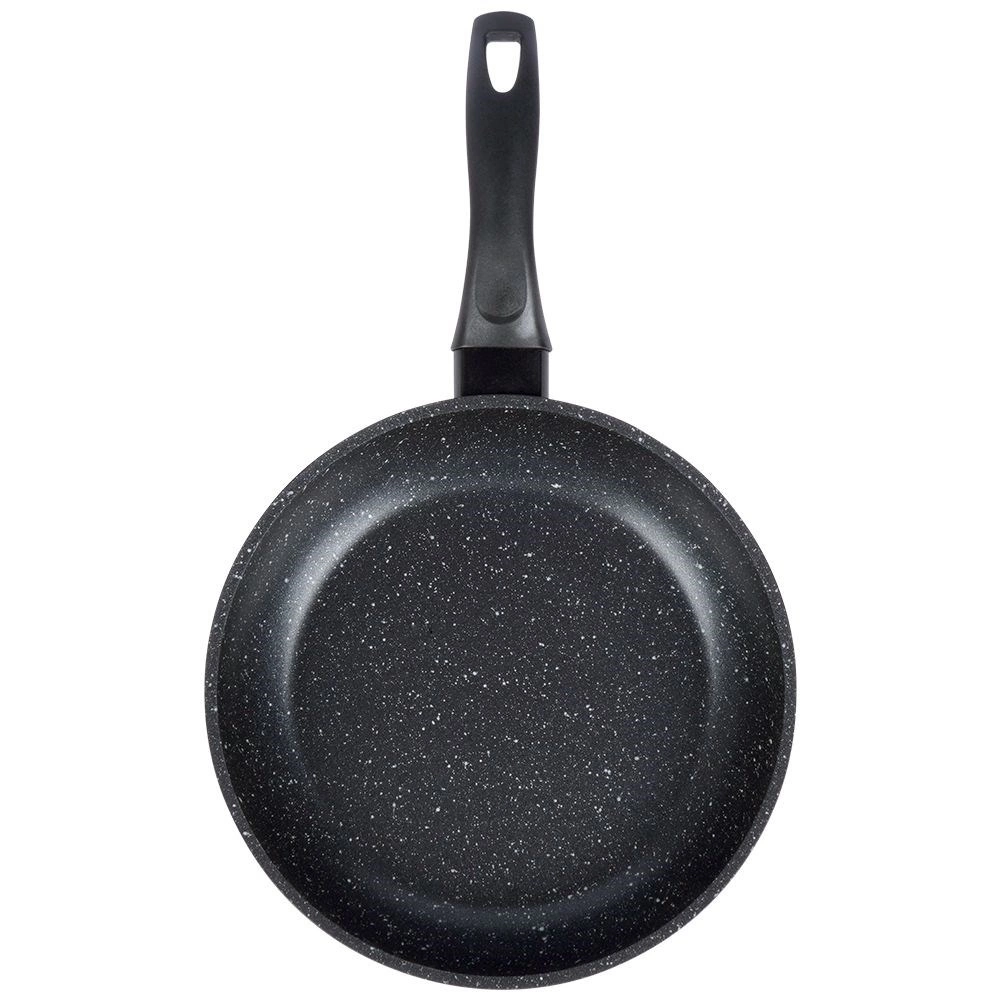 Robusna tava od aluminijskog lijeva sa stilskim granitnim izgledom izvrsna je za prženje i pirjanje mesa, povrća te pripremu palačinki i fritula. Neljepljiva granitna površina bez PFOA i PTFE osigurava lako odvajanje namirnica i zdravije kuhanje s minimalno ulja.