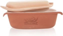 Praktični keramički kalup za pečenje kruha s poklopcem dimenzija 33 × 16 × 16 cm i zapremnine 2,7 l osigurava ravnomjerno pečenje i hrskavu koricu. Zahvaljujući prirodnoj keramici odlično provodi toplinu, pa je pečenje štedljivo i ravnomjerno. Kalup ima glaziranu unutrašnjost za lako čišćenje, udobne ručke za sigurno prenošenje i otporan je na temperature do 280 °C.