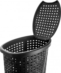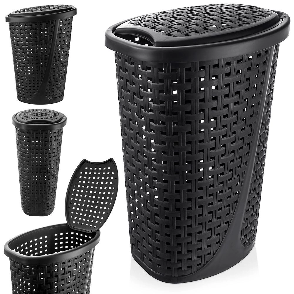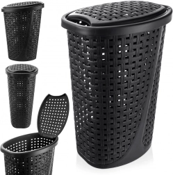 Održavajte red u kupaonici s prostranom i uskom košarom za rublje koja prima do 45 litara prljave odjeće. Moderna ratan struktura s perforacijom osigurava izvrsnu cirkulaciju zraka, pa se unutra ne zadržavaju vlaga ni neželjeni mirisi. Crna izvedba lako se uklapa u svaki stil interijera.