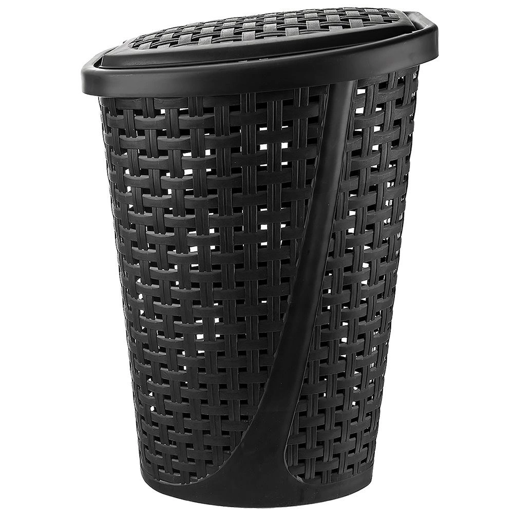 Košara je izrađena od lagane, ali izdržljive plastike, ima čvrst rub, integrirane ručice za udobno prenošenje i praktičan preklopni poklopac za brz pristup. Zahvaljujući vitkim dimenzijama bez problema stane uz perilicu ili u kut prostorije.
