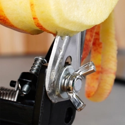 Jednim glatkim okretom ručice ogulit ćete, izvaditi sredinu i narezati pravilne kolutiće debljine oko 3 mm. Odlično za deserte, čipseve i sušenje.