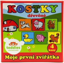 Drvene slikovne kocke Moje prve životinjice marke TEDDIES odličan su izbor za prve slagalice. Četiri kvalitetne drvene kocke u praktičnoj kartonskoj kutiji omogućuju sastavljanje šest različitih motiva kućnih životinja. Djeca će uživati u slaganju slika, ali i u građenju tornjeva, dvoraca ili ograda za životinjice.