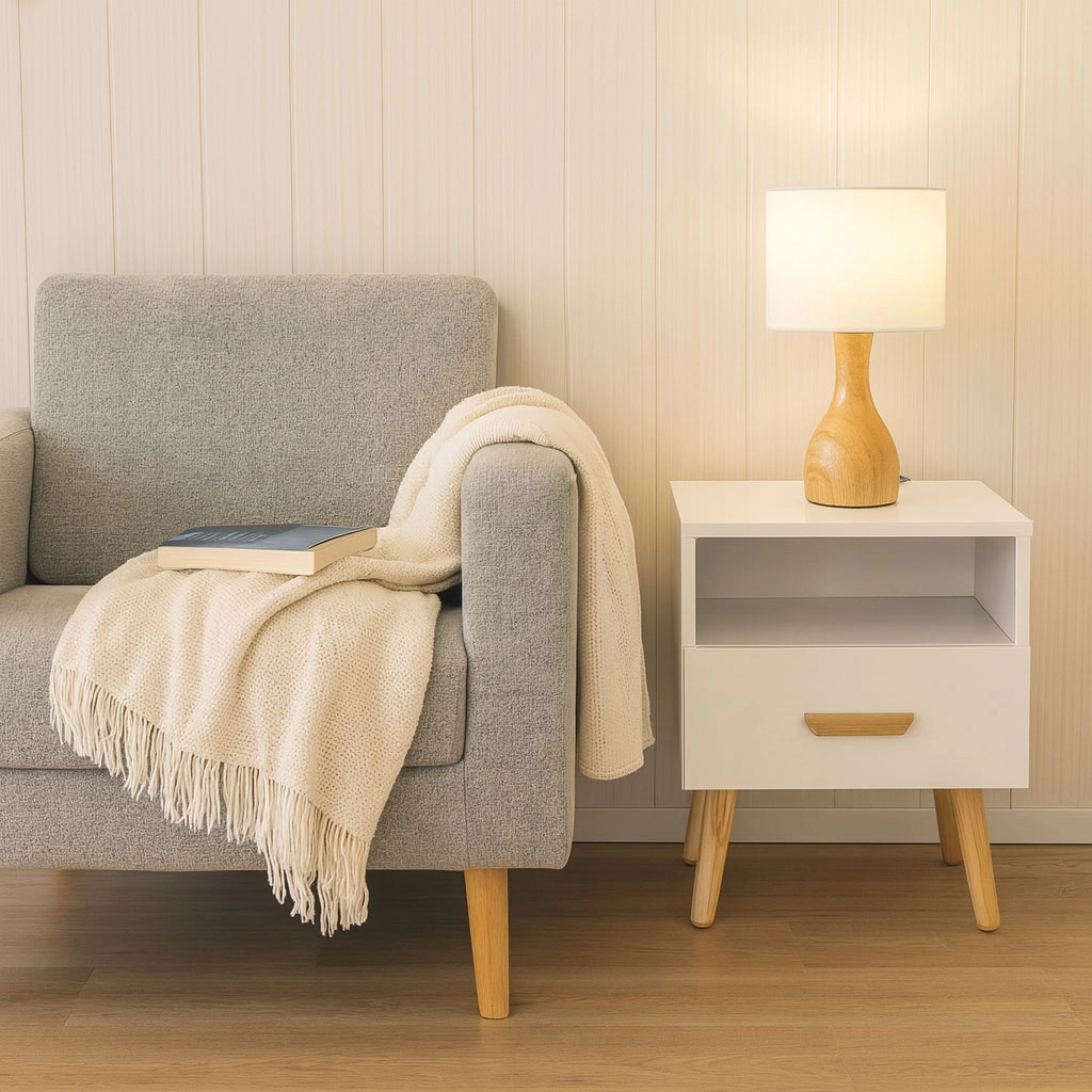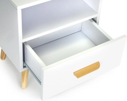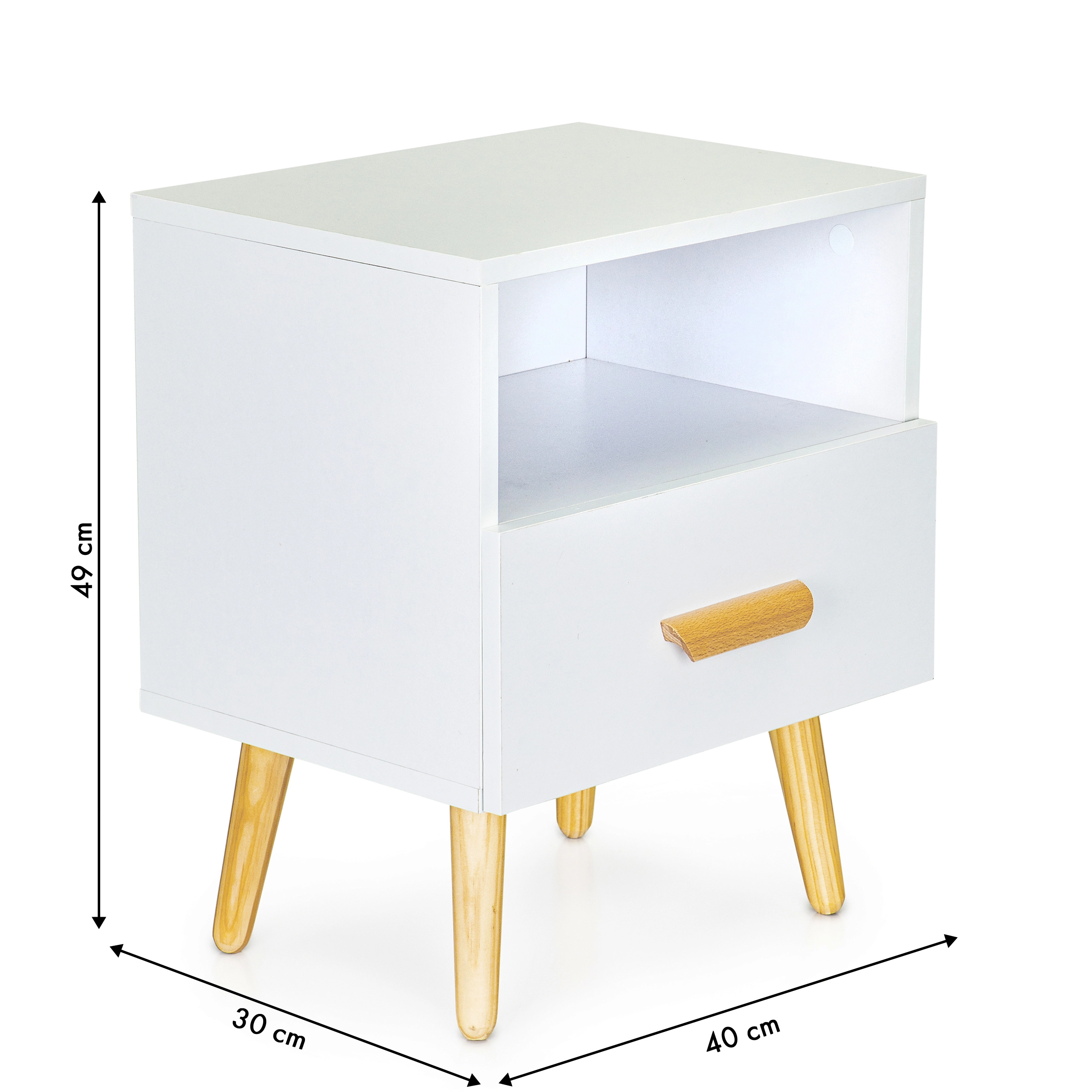 Set od 2 noćna stolića MODERNHOME idealan je izbor za spavaću sobu i dnevni boravak. Minimalistički dizajn u bijeloj boji lako se uklapa u moderan i skandi interijer, dok kompaktna veličina štedi prostor, a ipak nudi dovoljno površine za lampu, knjigu ili telefon.