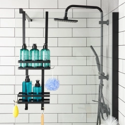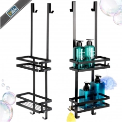 Održavajte tuš-kabinu preglednom i stilskom. Viseća polica u industrijskom loft dizajnu nudi dva kata prostora za pohranu za šampone, regeneratorе i sapune, dok četiri praktične kukice služe za spužvice, četke ili britvice. Prašnasto lakirani metal u crnoj boji je čvrst i otporan na koroziju, pa će odlično izdržati svakodnevnu upotrebu.