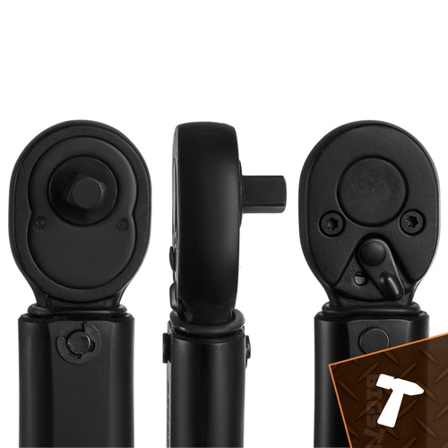 Robusna glava s preklopnikom smjera i brzim otpuštanjem za pouzdano zatezanje i otpuštanje. Klik mehanizam jasno signalizira postignuti moment.