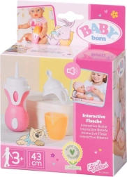 Interaktivna bočica i žlica za lutke BABY Born savršeni su dodatak za realističnu igru. Ovaj set sadrži bočicu s dva nastavka – jedan za pijenje sa zvučnim efektom i drugi sa žlicom za hranjenje kašicama. Dovoljno je istisnuti kašicu kroz otvor na donjem dijelu i bočica je spremna za upotrebu.