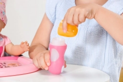 Uživajte u fleksibilnosti s dvama nastavcima: jedan za pijenje i drugi sa žlicom za hranjenje, što ovu igračku čini univerzalnim dodatkom svakoj igri s lutkama.