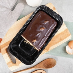 Ovaj pravokutni kalup od kvalitetnog ugljičnog čelika s granitnim neprianjajućim slojem idealan je za kućno pečenje kruha, keksa, biskvita i pašteta. Materijal osigurava brzo i ravnomjerno zagrijavanje, tako da će vaši uradci uvijek biti lijepo i ravnomjerno pečeni.