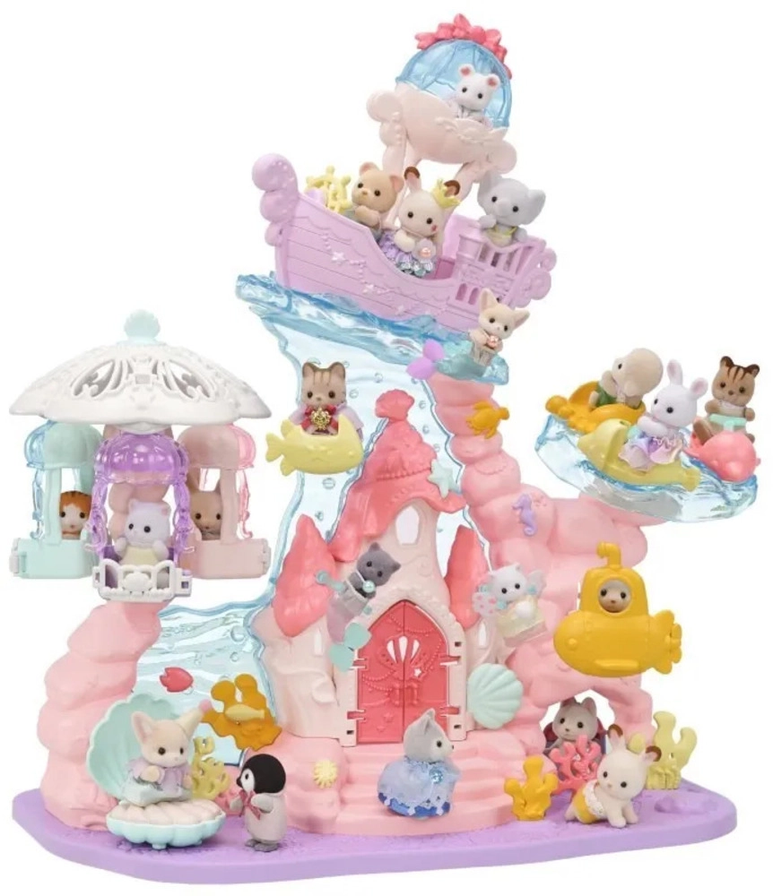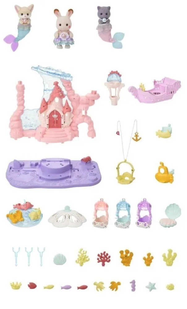 Uđite u čarobni svijet s podmorskom palačom prepunom interaktivnih funkcija. Djeca mogu voziti figurice žičarom, zavrtjeti vrtuljak s meduzama i morskim bićima, ploviti u podmornici ili se provozati na simpatičnoj žutoj ribici. Bogati detalji, prozirni elementi i pastelne boje stvaraju očaravajuću scenu za beskrajne priče.