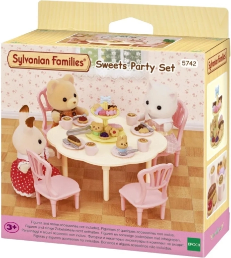 Stvorite bajkovitu atmosferu čajanke sa setom Sylvanian Families stol, stolice i slastice. U pakiranju se nalazi veliki blagovaonski stol, četiri stolice i kompletno posuđe za četiri figurice – od tanjura i vilica do šalica za kavu i cappuccino. Bogata ponuda deserata, poput muffina, torti, tartaleta, čokolada, bombona i keksa, svakom druženju daje realističan i razigran ugođaj.