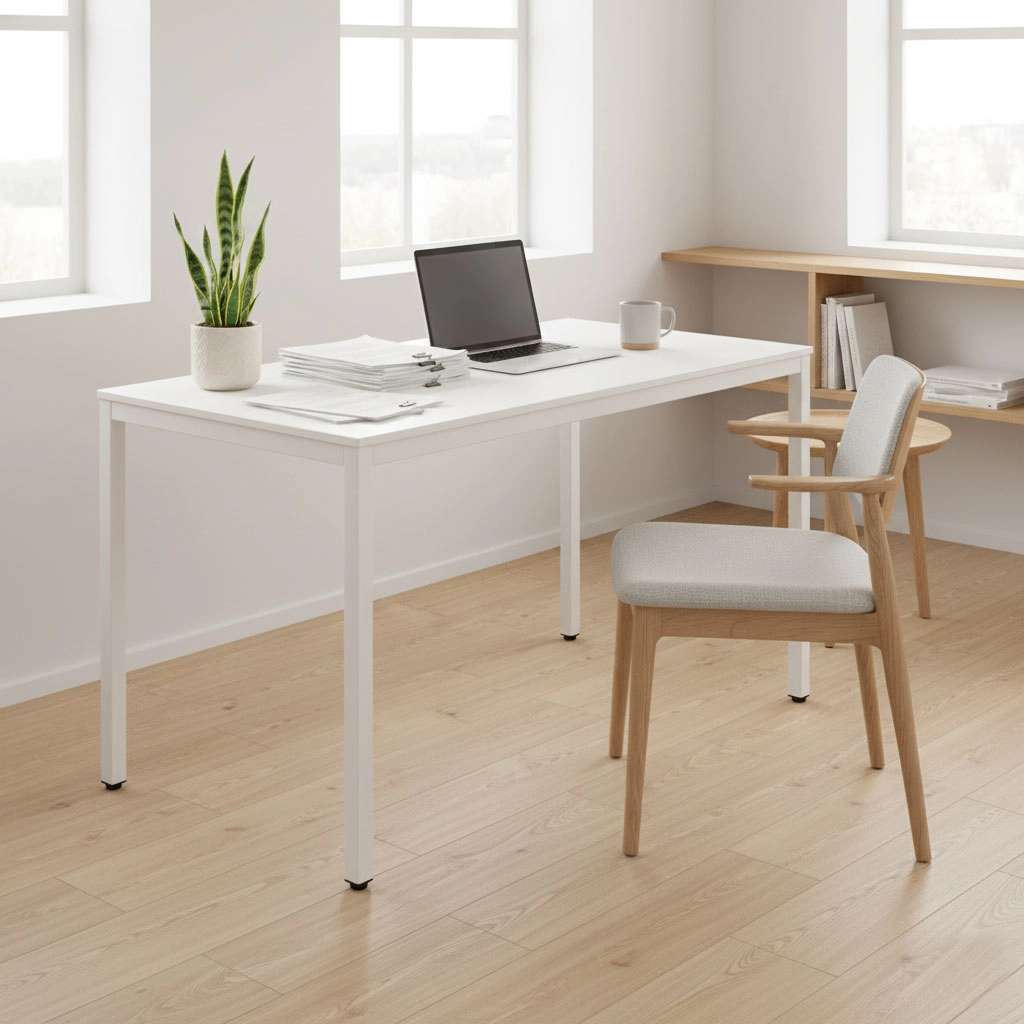 Tražite stol koji podnosi svakodnevno blagovanje i rad? Ovaj bijeli stol brenda ModernHome spaja čist izgled, izdržljive materijale i praktične dimenzije. Ploča 120 × 60 cm pruža dovoljno mjesta za obitelne ručkove, učenje i rad na prijenosniku.