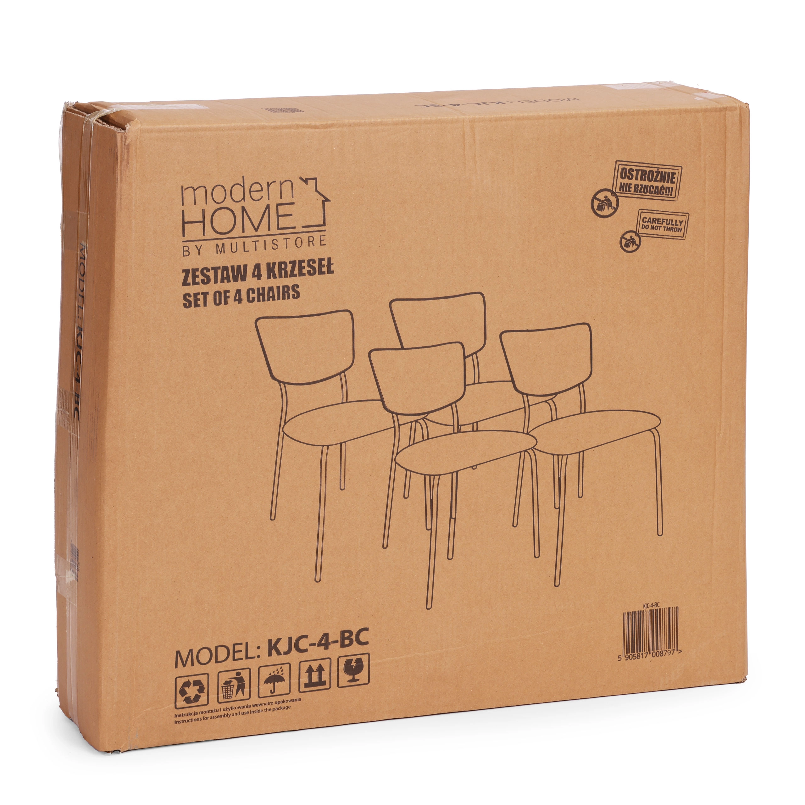 Elegantan set od 4 stolice ModernHome unijet će u blagovaonicu i dnevni boravak moderan stil i udobnost. Izdržljiva metalna konstrukcija, ugodno baršunasto presvlaka, mekano pjenasto punjenje i ergonomski oblikovano naslonjalo osiguravaju svakodnevnu udobnost. Stolice su stogive, imaju zaštitne završetke na nogama i nose do 120 kg.
