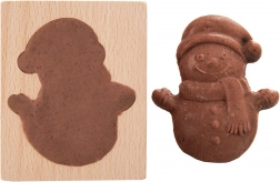 Ovaj drveni kalup u obliku nasmiješenog snjegovića idealan je za blagdansko pečenje i kreativno stvaranje s djecom. Reljefni urezani motiv stvara lijepo plastičan uzorak koji se ističe na slasticama, medenjacima ili čokoladi. Vanjske dimenzije kalupa su 11 × 9,5 × 2 cm, a završni motiv snjegovića približno 8,7 × 7,5 cm.