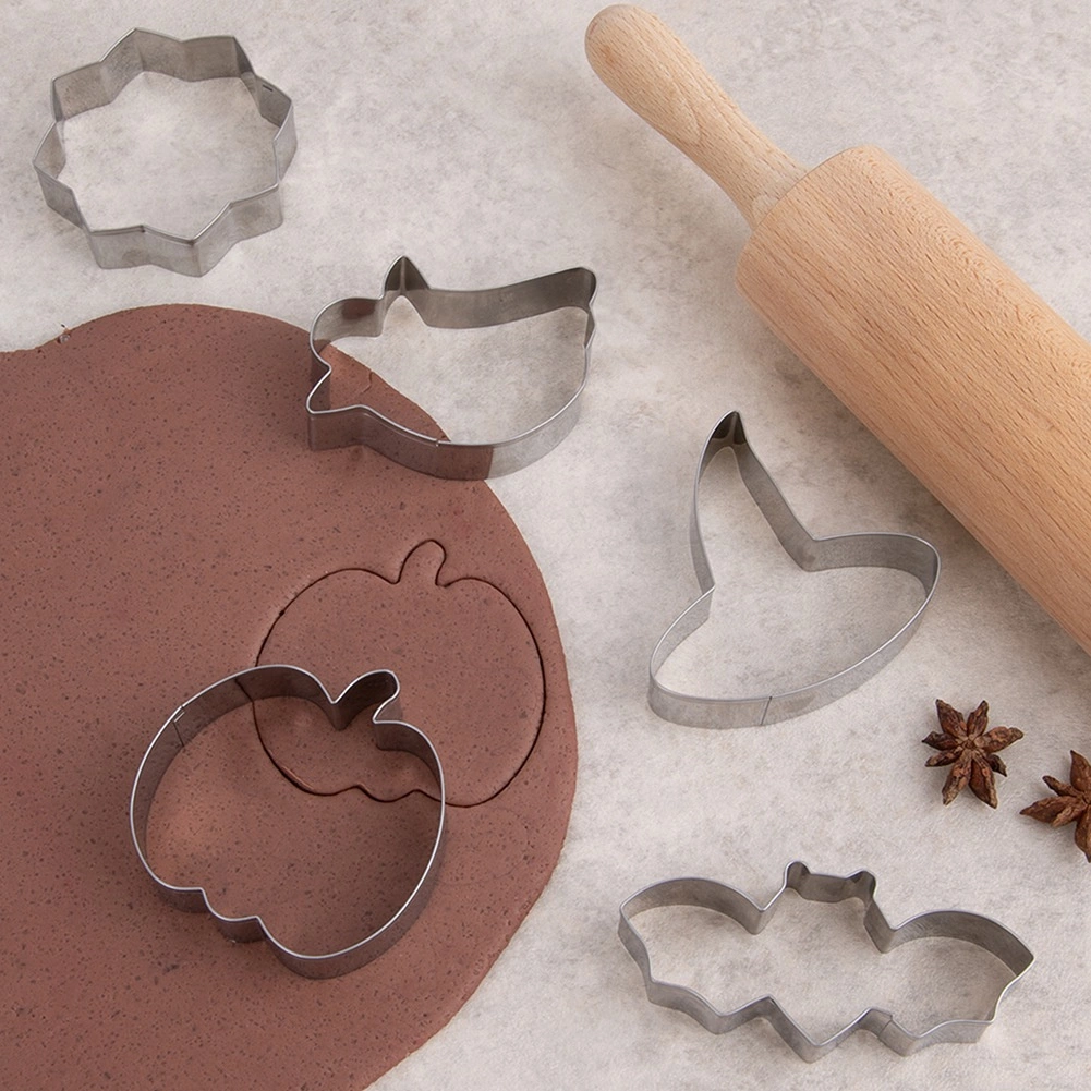 Uz ovaj set halloween kalupa pripremit ćete savršeno oblikovane kekse i medenjake s motivima duhova, bundeva, šišmiša, vještičjeg šešira i zvijezde. Oštri, tanki rubovi od nehrđajućeg čelika osiguravaju precizne i čiste rezove kako se tijesto ne bi deformiralo, a oblici ostali izražajni i nakon ukrašavanja glazurom.