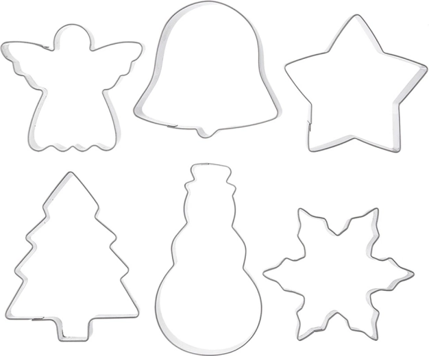 Otkrijte radost pečenja s elegantnim setom od 6 kalupa od kvalitetnog nehrđajućeg čelika. Oblici zvijezde, jelke, anđela, zvona, snježne pahulje i snjegovića stvaraju savršeno oštre linije i blagdansku atmosferu na vašem stolu. Kalupe su čvrste, izdržljive i uz pravilnu njegu trajat će godinama.