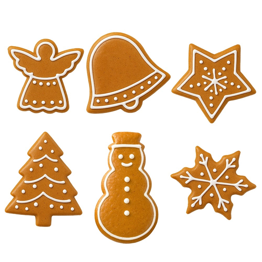 Angel, zvono, zvijezda, jelka, snjegović i snježna pahulja – sve za kreativno pečenje i blagdansko ukrašavanje.
