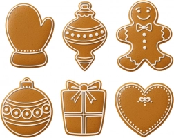Ovaj set sadrži šest popularnih motiva – rukavicu, duguljasti ukras, medenjak-lik, okruglu kuglicu, poklon i srce. Kalupi od kvalitetnog nehrđajućeg čelika čvrsti su, izdržljivi i stvaraju precizne linije bez stršećih vlakana tijesta. Zahvaljujući glatkim reznim rubovima lako ćete izrezati ujednačene oblike za savršeno izgledajuće kekse.