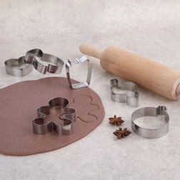 Univerzalnu primjenu cijenit ćete tijekom cijele godine: osim tijesta za medenjake i kekse možete izrezivati fondant, sireve, žele, mekano voće i mini sendviče za efektno serviranje. Set je isporučen na dekorativnoj kartici u obliku božićnog ukrasa, pa odlično služi kao poklon pakiranje.