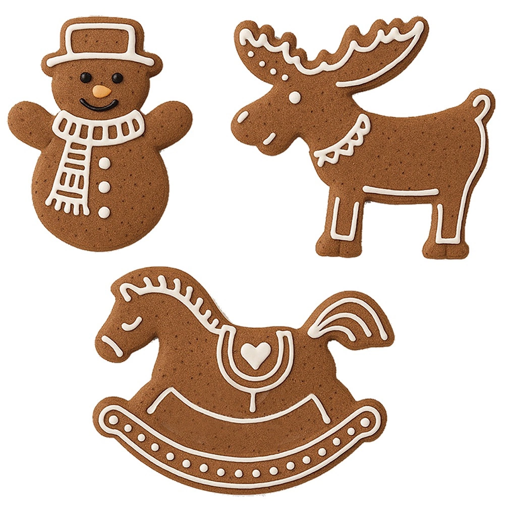 Snjegović, konjić na ljuljanje i sob pokrivaju većinu omiljenih božićnih motiva. Idealni za medenjake i maslene kekse.
