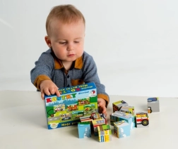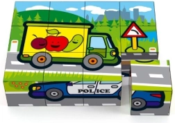 Dvanaest kocki sa slikama omogućuje sastavljanje 6 različitih slika. Složite autobuse, hitnu pomoć ili policijska auta!
