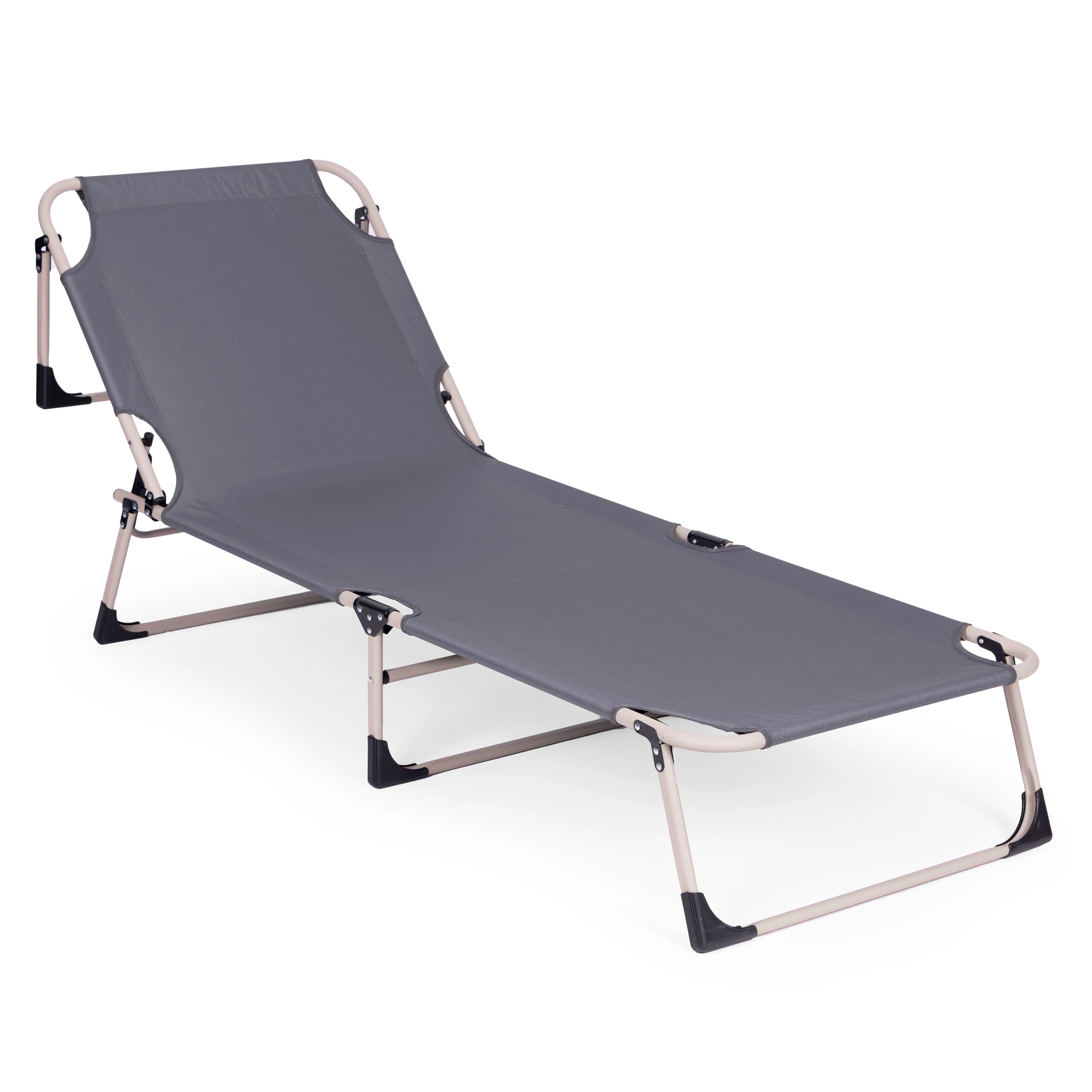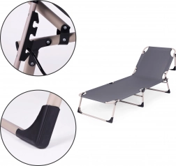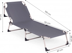 Naslon leđa lako podesite u 4 položaja od polusjeda do potpuno vodoravnog položaja. Protuklizni završeci na nogama povećavaju sigurnost na raznim podlogama. Zahvaljujući sklopivoj konstrukciji ležaljku brzo sklopite u kompaktne dimenzije i bez napora prenesete.