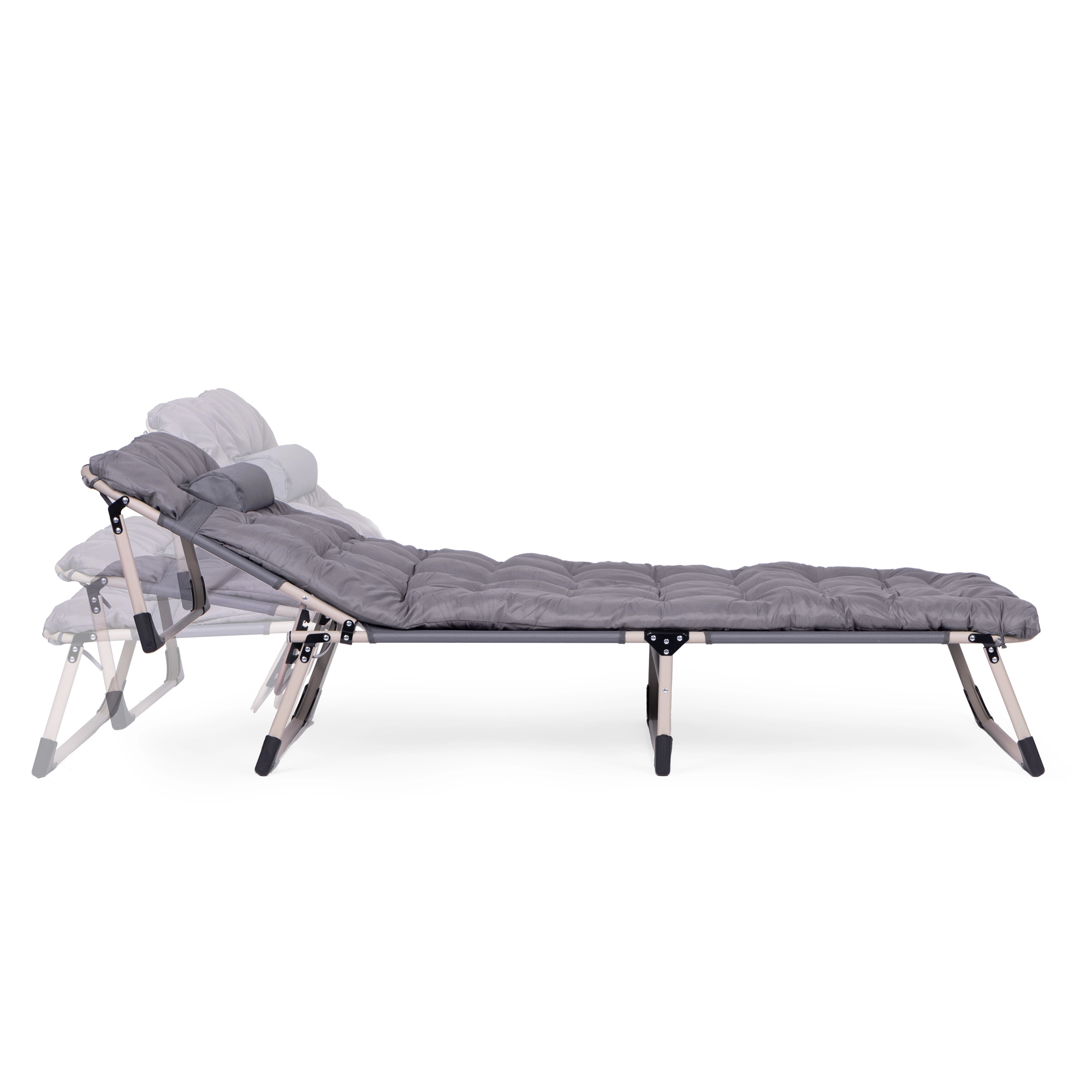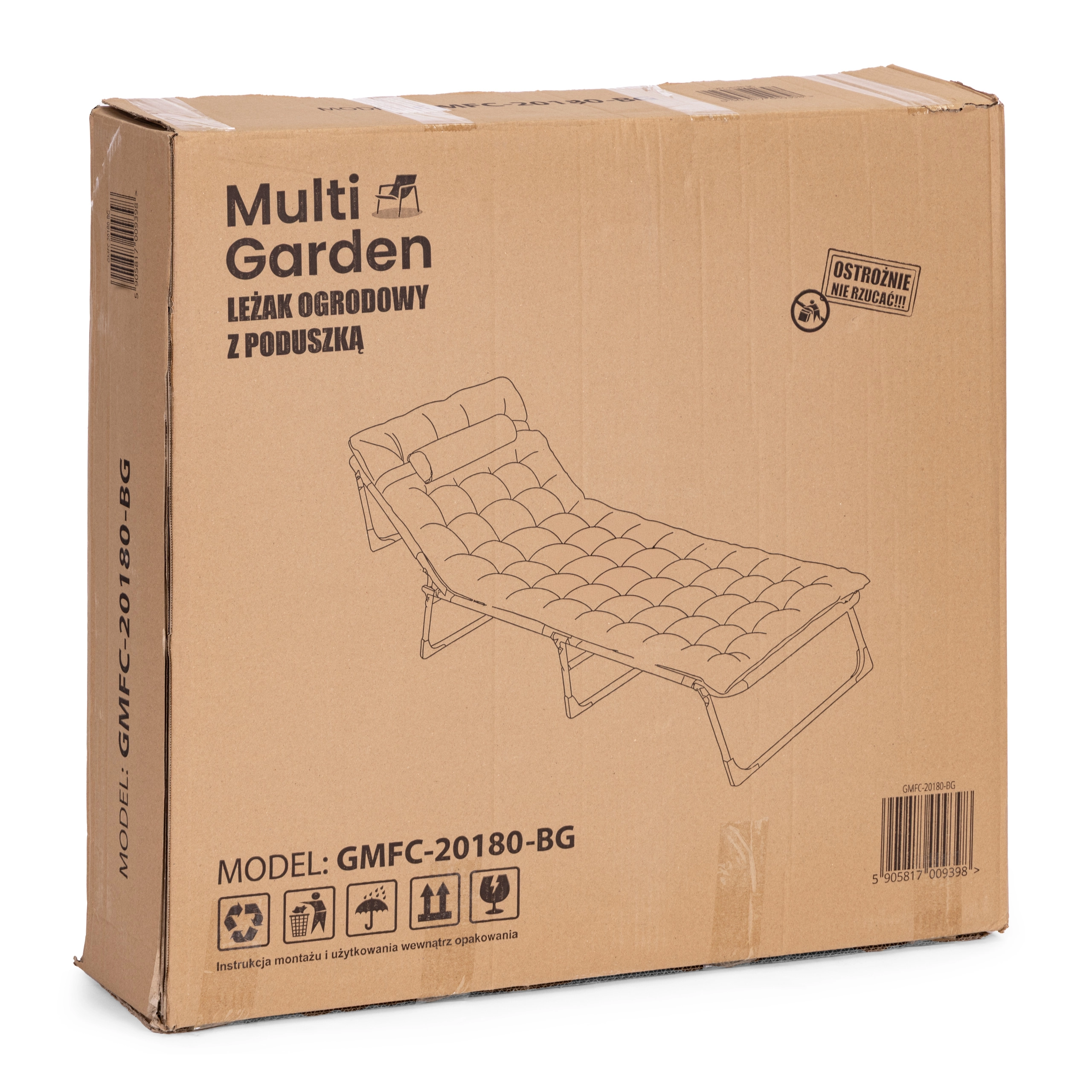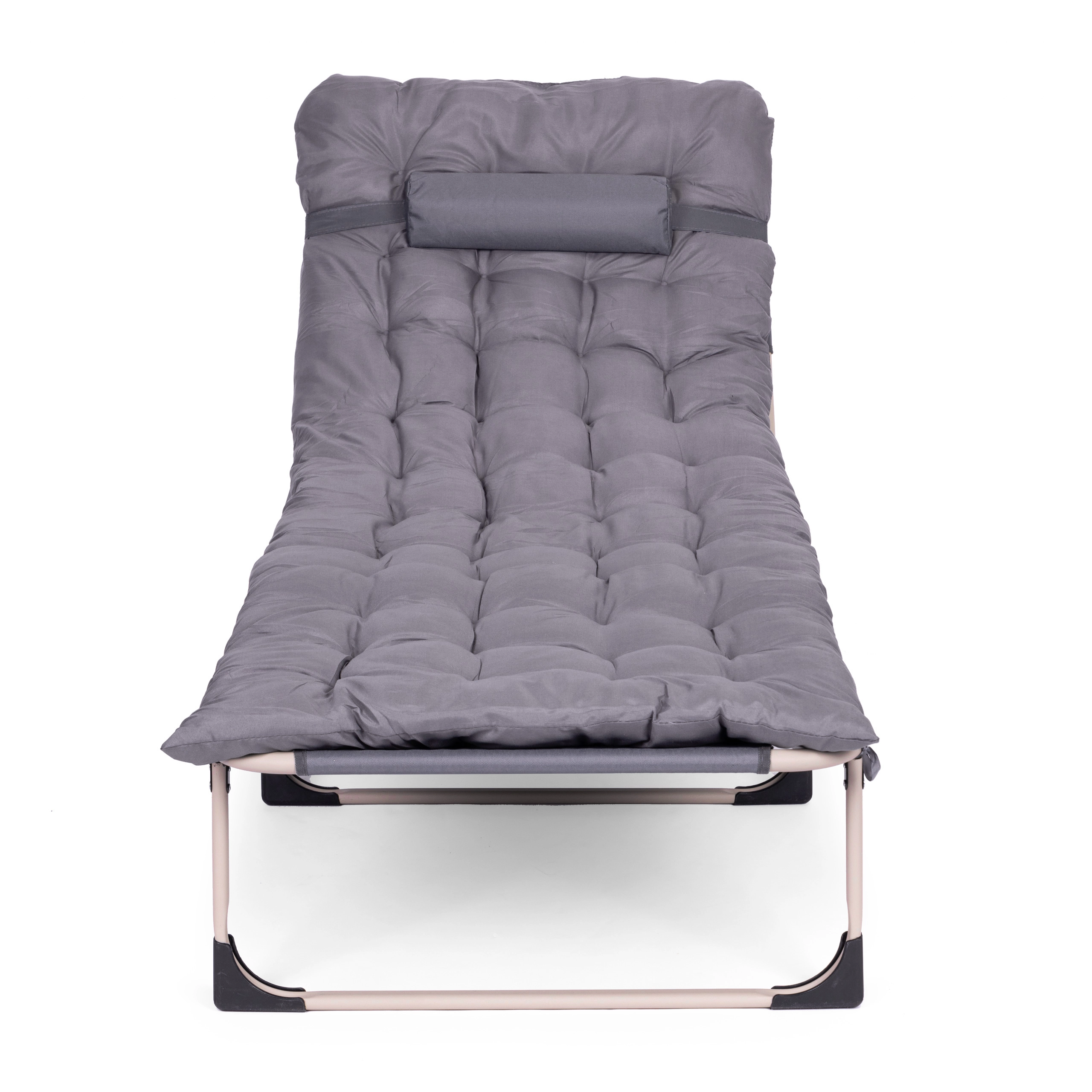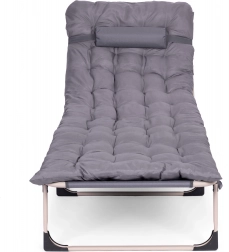 Praktična i udobna ležaljka za odmor bilo gdje – uz vodu, u vrtu ili na balkonu. Zahvaljujući debelom podstavljenom madracu i integriranom jastuku pruža cjelodnevnu udobnost, dok čelični okvir s praškastim premazom osigurava dug vijek trajanja i stabilnost.