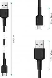 Pouzdani AUKEY kabel osigurava brzo punjenje i stabilnu sinkronizaciju podataka. Zahvaljujući podršci za Power Delivery i Quick Charge 4.0/3.0/2.0 podnosi snagu do 60 W (20 V / 3 A), što ga čini idealnim za telefone, tablete i manje prijenosnike s USB‑C priključkom. Pozlaćeni konektori i višeslojno oklopljenje povećavaju izdržljivost i smanjuju smetnje.