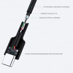 Pleteni najlonski kabel ističe se visokom fleksibilnošću i otpornošću na savijanje. Duljina 2 metra pruža udobnost pri korištenju kod kuće, u uredu i na putu. Verzija OEM isporučuje se u jednostavnom pakiranju, uključujući praktičnu čičak traku za organizaciju kabela.