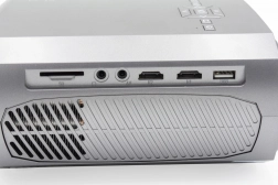 Bogata povezivost omogućuje jednostavno spajanje s vašim uređajima: spojite laptop putem HDMI-ja, reproducirajte filmove s USB-a ili SD kartice, ili iskoristite VGA i AV. Ugrađeni 3 W zvučnik pruža osnovan zvuk, a za bolji doživljaj dovoljno je priključiti vanjske zvučnike ili slušalice na 3,5 mm priključak. U paketu je i daljinski upravljač za praktično upravljanje.