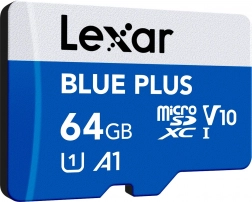 Kartica Lexar microSDXC Blue Plus 64 GB dizajnirana je za brzo snimanje, reprodukciju i prijenos multimedije. Nudi performanse A1 za agilniji rad aplikacija te klasu UHS-I U1 / V10 za pouzdan zapis Full HD videa. Brzina čitanja do 100 MB/s ubrzava sigurnosno kopiranje i prijenose na računalo.