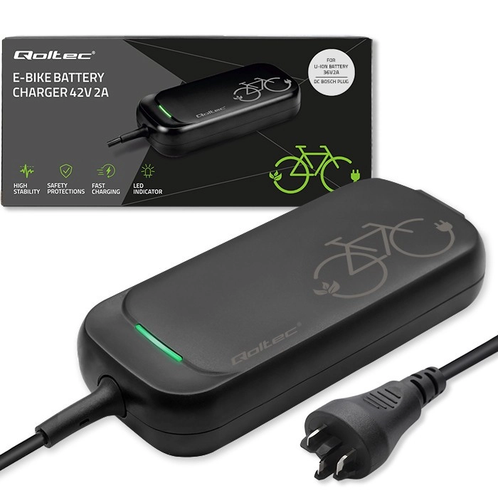 Uživajte u praktičnosti mobilnog punjenja svog električnog bicikla s Qoltec punjačem. Zahvaljujući izlazu 42 V / 2 A i BOSCH konektoru, idealan je za 36 V Li‑ion baterije. Iz standardne mrežne utičnice 230 V uobičajeno puni akumulator za 4–6 sati (ovisno o kapacitetu i trenutačnom stanju napunjenosti). Pregledna LED lampica signalizira tijek: crvena = punjenje, zelena = potpuno napunjeno.