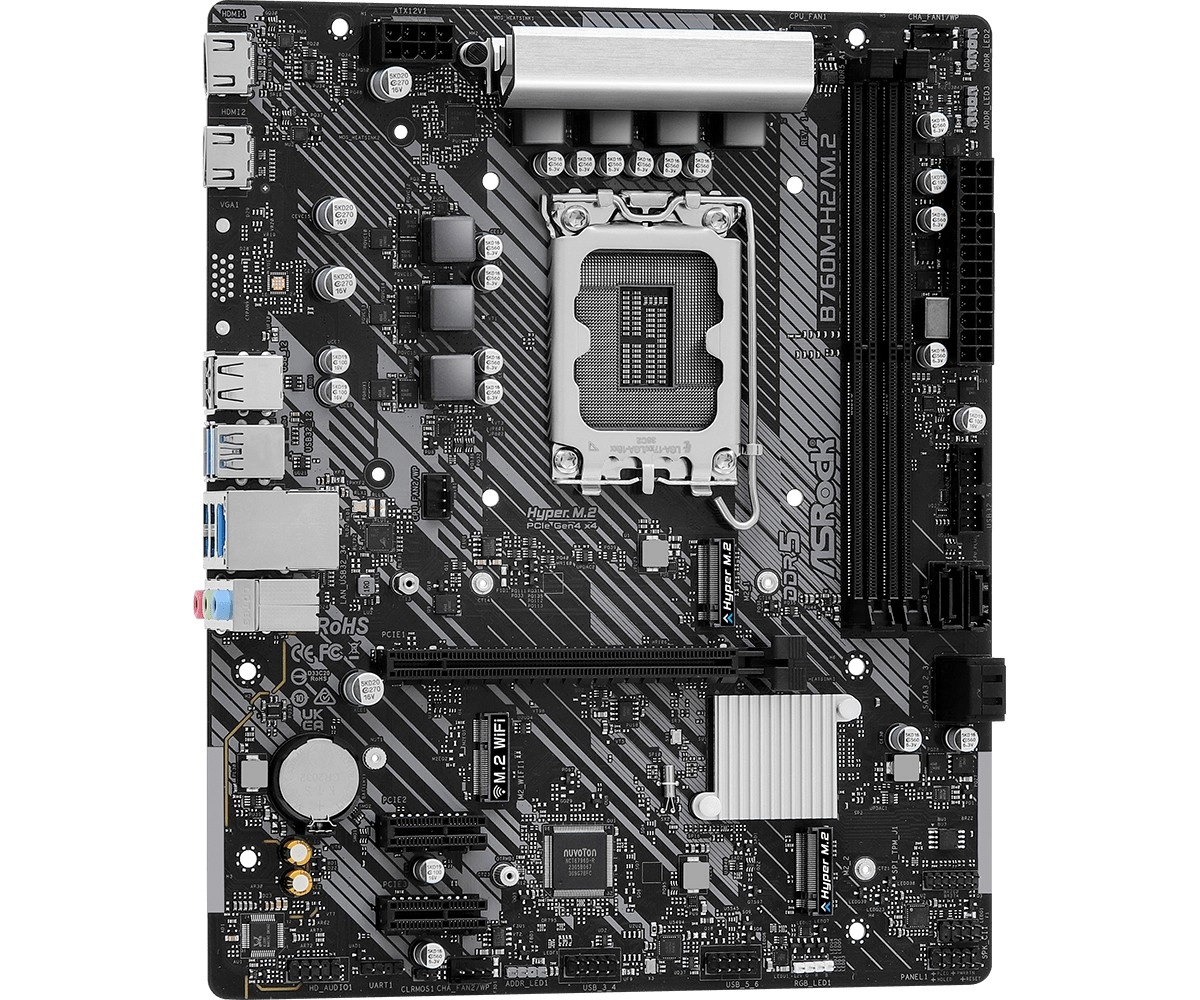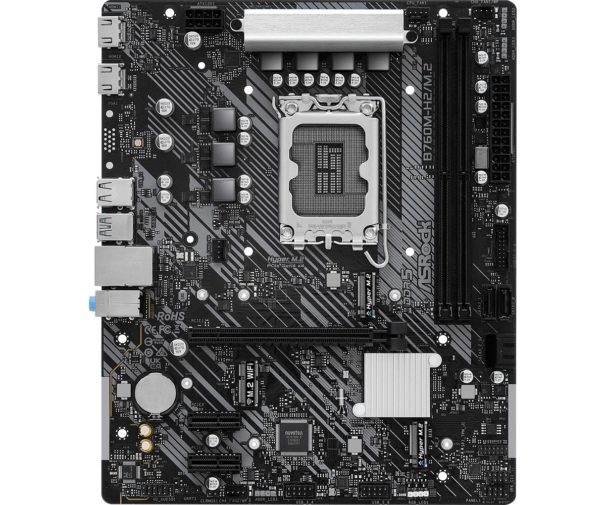 Kompaktna microATX matična ploča za socket LGA1700 nudi podršku za Intel Core procesore 12., 13. i 14. generacije, brzu DDR5 memoriju do 7200+ (OC) i bogatu povezivost. Zahvaljujući konfiguraciji napajanja 5+1+1, dvama Hyper M.2 utorima (PCIe Gen4x4), 2,5G mreži i kvalitetnom zvuku Realtek ALC897, izvrsna je opcija za moderne gaming i radne konfiguracije. Tu su i PCIe 4.0 x16, 2× HDMI, USB 3.2 Gen1 te mogućnost proširenja za Wi‑Fi (M.2 Key E).