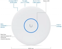 Uživajte u najnovijem standardu bežičnih mreža s pristupnom točkom Wi‑Fi 7 U7 Pro XGS. Zahvaljujući 8 prostornim strujanjima, učinkovitoj upravljivosti većeg broja uređaja i optimiziranom oblikovanju signala, pruža vrhunske performanse u gusto naseljenim okruženjima. Moderan kružni dizajn s LED indikacijom statusa uklapa se u svaki interijer.