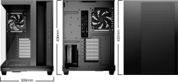 Unatoč kompaktnom tlocrtu, kućište prima radijator do 360 mm, matične ploče ATX i grafičke kartice do 400 mm. Pametni nosač diskova istovremeno nudi mjesta za 2× HDD i 2× SSD bez ograničavanja prostora iza traya za vođenje kabela. Dvije moguće pozicije napajanja omogućuju uporabu ploča sa stražnjim konektorima (Asus BTF, MSI Project Zero, Gigabyte Project Stealth), a da se pritom ne izgube montažne pozicije za pohranu.