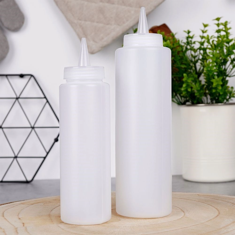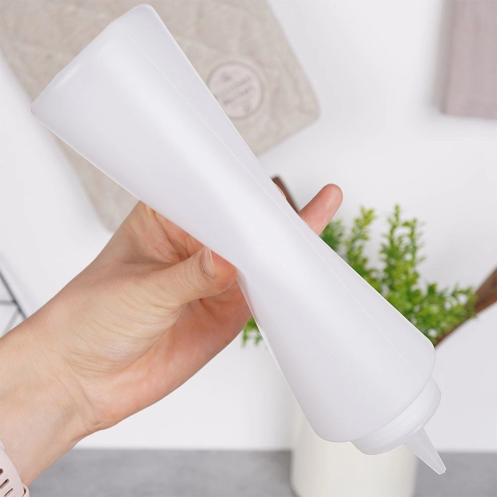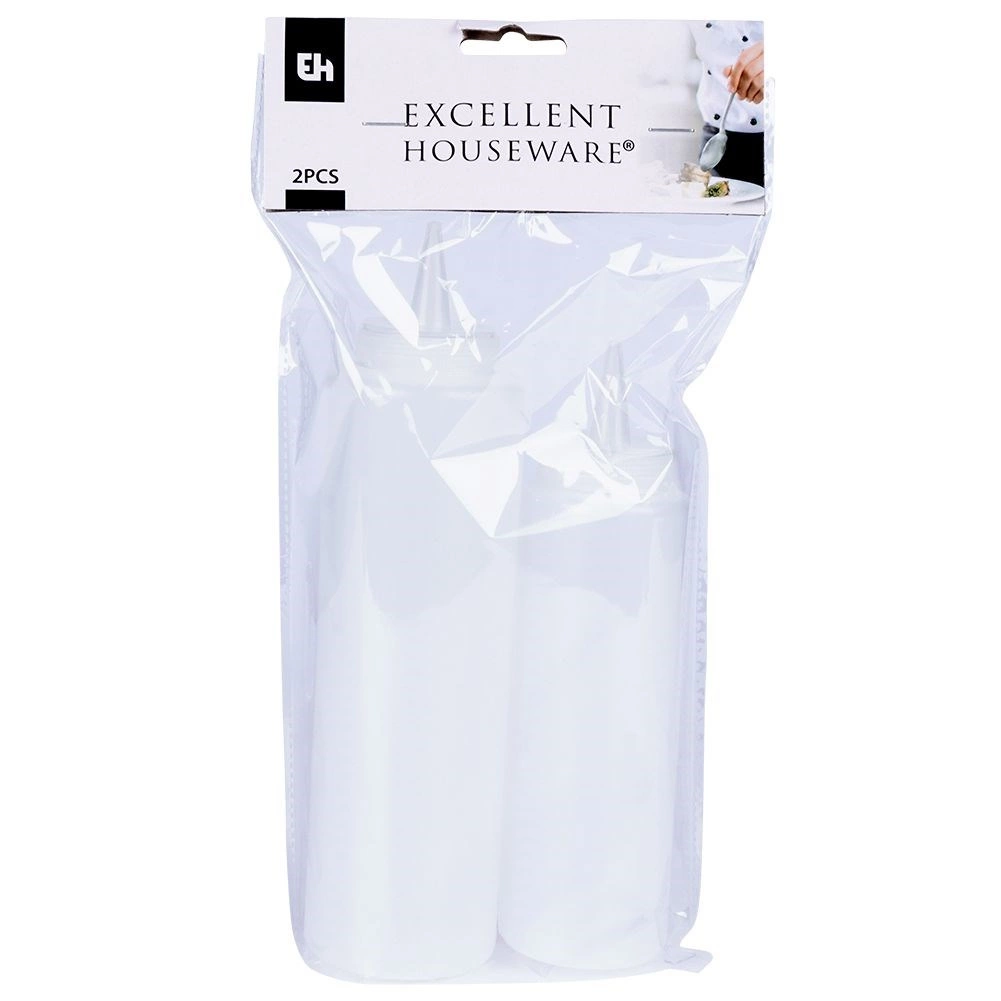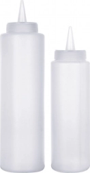 Veća boca (500 ml, 21 × 6 cm) idealna je za umake i ulja, manja (250 ml, 18 × 5 cm) izvrsna je za ukrašavanje torti, cupcakeova i medenjaka. Boce su od izdržljive plastike, lako se pune i čiste te se mogu prati u perilici.