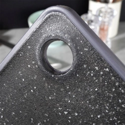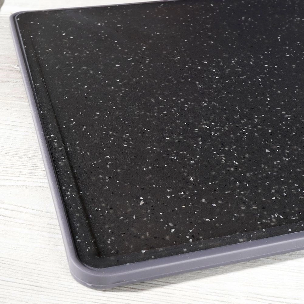 Praktična i elegantna daska od kvalitetne plastike s površinom koja imitira crni granit idealna je za rezanje voća, povrća i mesa. Zahvaljujući neporoznom materijalu ne upija mirise ni tekućine te pomaže održati kuhinjsku plohu čistom i bez ogrebotina.
