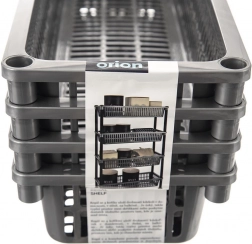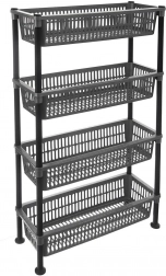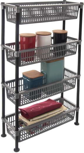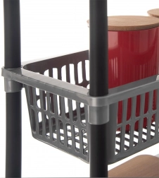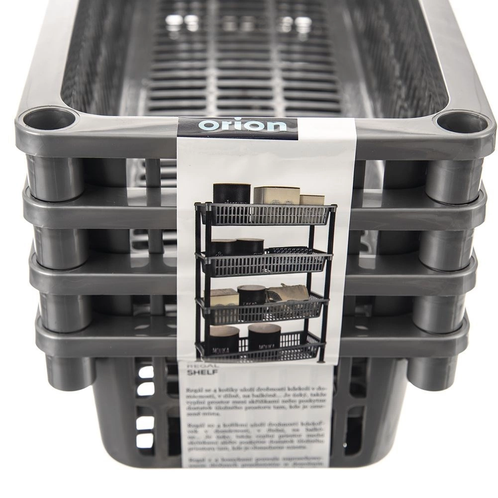 Regal je izrađen od lagane i izdržljive plastične konstrukcije, koja je otporna na vlagu i lako se čisti. Brza montaža bez složenih alata; po potrebi se košare mogu umetnuti jedna u drugu i regal kompaktno pohraniti.