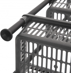 Plastična konstrukcija otporna na vlagu lako se čisti, a košare se radi uštede prostora mogu umetnuti jedna u drugu pri skladištenju.