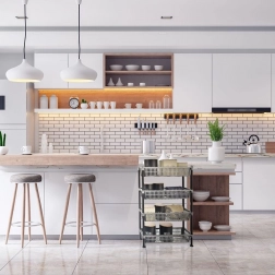 Uzak regal GREY dimenzija 83 × 19,5 × 50 cm idealan je tamo gdje je malo mjesta, a puno stvari. Četiri košare (pribl. 50 × 20 × 10 cm) pružaju pregledno odlaganje kozmetike, sredstava za čišćenje, namirnica, povrća ili igračaka. Zahvaljujući ventiliranim bočnim stijenkama košara, sve “diše” i sadržaj je dobro vidljiv.