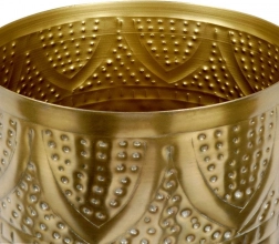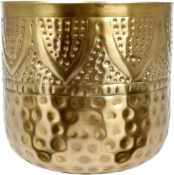 Elegantna zlatna navlaka za lonac za cvijeće dimenzija 19 × 18 cm savršen je dodatak za dom, ured, balkon i terasu. Precizno izveden kovani i reljefni uzorak stvara sofisticiran efekt koji ističe ljepotu živih i umjetnih biljaka te obogaćuje svaki interijer, osobito u glamour stilu.