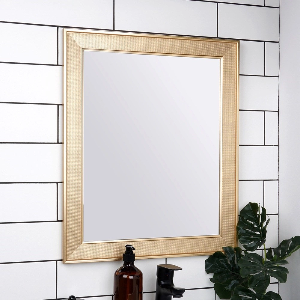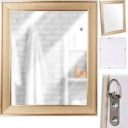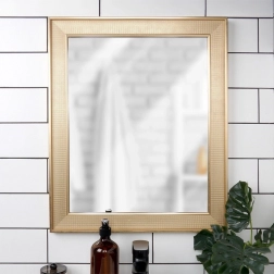 Ovo stilsko ogledalo sa zlatnom završnom obradom trenutno daje interijeru dozu elegancije te ga vizualno posvjetljuje i povećava. Zahvaljujući univerzalnim dimenzijama 49,5 × 59,5 cm pristaje dnevnom boravku, predsoblju i spavaćoj sobi, ali i komercijalnim prostorima poput ureda, restorana ili salona ljepote.